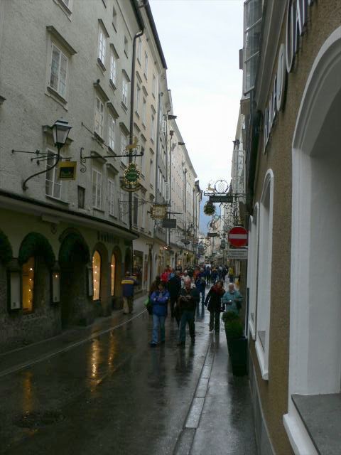 The sundial was reading the correct time, of course (almost 3pm), but I cold not understand the character on the dial. Maybe it is Father Time? When we got back to the train station, we found out that the German train system is not perfect; apparently, some kids were playing on the tracks somewhere outside of Munich, and they had to send some police to investigate. Our train was delayed 10 minutes, then 10 minutes later, another 10 minutes. This continued for another hour, until the train was more than 90 minutes late. By this time, we were not sure we were going to make it to Salzburg before midnight. We missed one train when the platform was unexpectedly switched from Gleis 4 to Gleis 8, and I did not pay enough attention to the overhead PA system to understand the German-language message. We were advised by the DB information booth to take any train to Munich, and try to get to Salzburg from there. We finally arrived in Salzburg about 12:30 am.