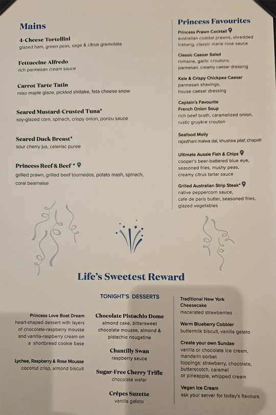 cruise ship had lots of variety in the dinner menus, and higher-class than a