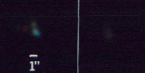 Shown above is what I believe to be the first color photo ever taken of the diffraction pattern of a real star! The photo was taken with the AO-2 adaptive optics system, proving the advantage of image stabilization, even on nights of good seeing! The image was scanned from an original enlargement made from the negative, so there is quite a bit of detail missing. The right hand photo shows the same star, but with the AO-2 turned off. You may have to turn up your monitor brightness, but there is a smudge! Here is the description and story behind the image pair.