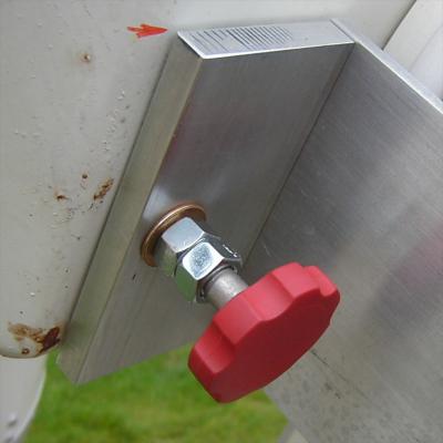 To lock the polar axis, a threaded bolt and support was added. Screwing the knob inserts the rounded end of a 3/8" diameter bolt into a matching hole in the fork mount. With the primary mirror removed, the front of the OTA is heavy enough to keep the declination near horizontal. With the mirror installed and balanced, a small weight placed on an OTA optical breadboard platform is enough to keep the OTA from moving.