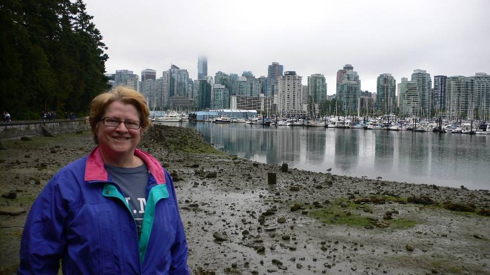 On Sunday morning, we strolled around Vancouver to Stanley Park during a light mist. The large number of glass-windowed buildings are apartments lining the waterfront.