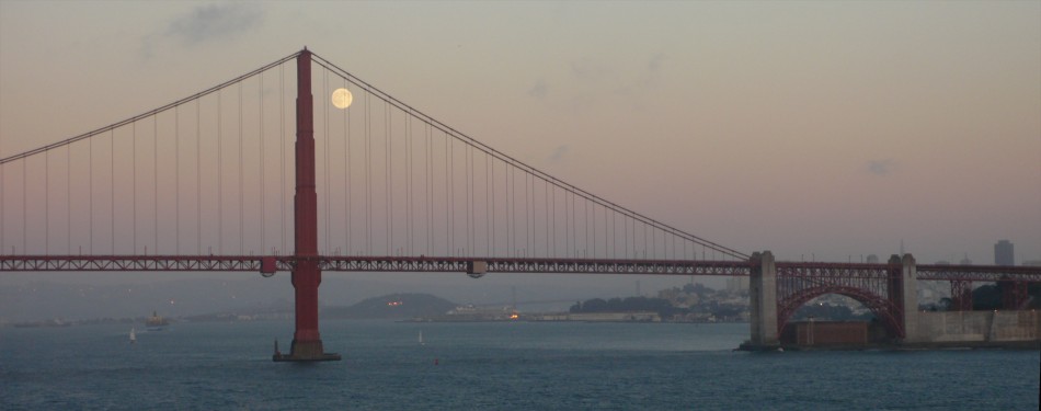 As we left San Francisco, we wen under the Golden Gate Bridge. The moon appeared trapped like an inmate at Alcatraz.