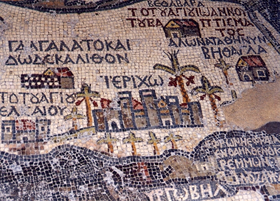 The Madaba Map in Jordan, on the way to Petra, is a few thousand years old. This is a close-up to show some details.