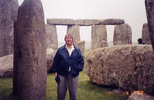 Stonehenge on an afternoon with light rain. The tour agency who arranged this was apparently a friend of the Stonehenge site operator, and gets special permission to let his tours walk among the stones after the site closes in late afternoon to the general public. We did not have to stay behind the ropes!