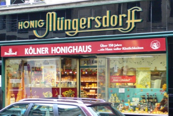 The main pedestrian shopping mall near the cathedral has all manner of stores, from high fashion stores to fast food to specialty stores like this honey store. I could not resist my tradition of getting dark honey from various locations, but since I already bought a jar in Speyer, I bought some honey wine and honey liquor from this shop.