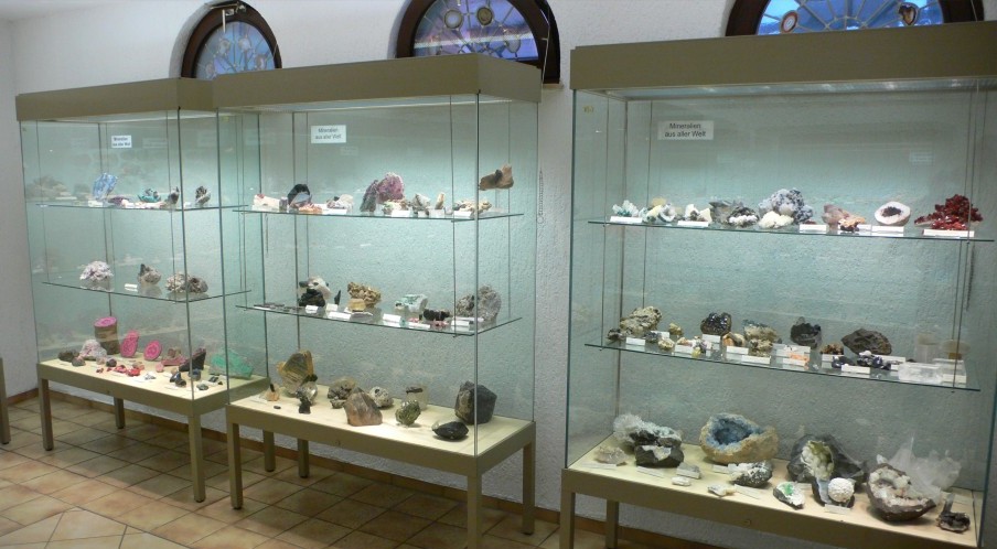 The mineral museum in Idar-Oberstein filled several floors, and turned out to be the only place in town where I could see mineral specimens instead of gems. I could not find any mineral dealers in the main part of town, so this was my only opportunity. Unfortunately, I was not too impressed with the specimens. I was also expecting to see some pretty amazing carvings, but they must have been on tours. After this disappointment, I decided not to stay a second night in town, and head to another place - Köln.