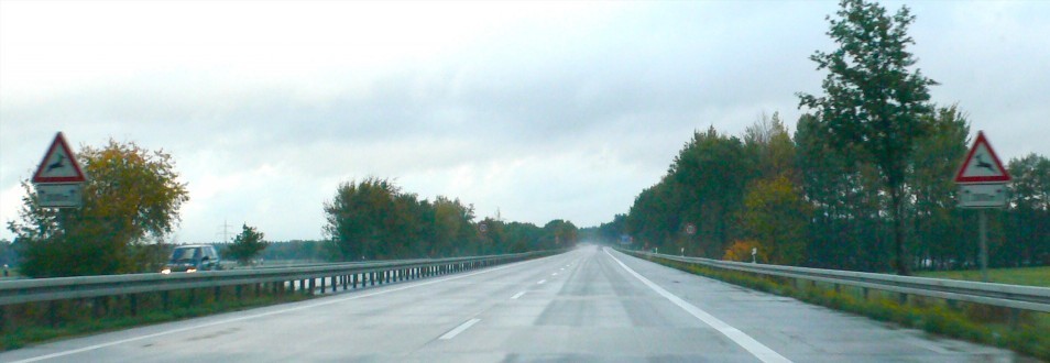 The Germans are so precise, I love it! Note that the deer warning signs on opposite sides of the highway are both facing toward the road. In America, they use the same sign on both sides. Who cares if a deer is *leaving* the highway? The orientation of the signs above make perfect sense!