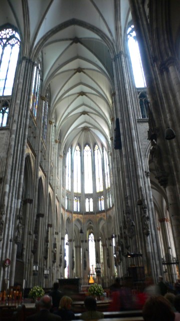 The narrow interior makes an optical illusion to me. The eyes are drawn upward, and when they return to ground level, the place just seem so much larger. The stained glass windows are overexposed here, but in person, add magnificent colors. I don't know if there is another more impressive cathedral in Europe, except perhaps the Sainte Chapelle in Paris.