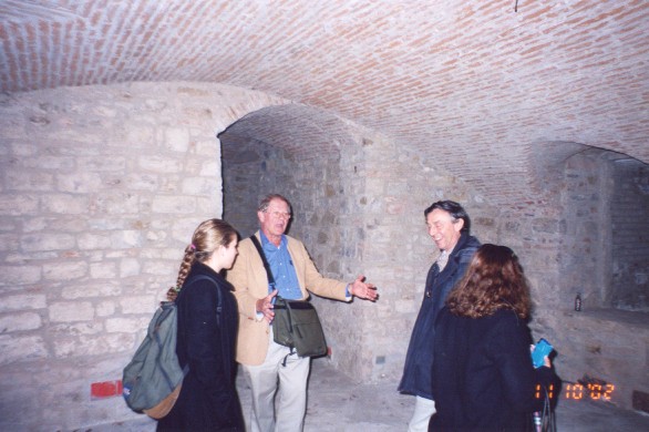 Galileo's living room; Jeralyn, Ken, Piero, and Ruth delighted at the scene. The building is being renovated by the University, so some of the rooms have more original flooring or roof than other rooms. None of the wall plaster is original, but the stone works are original.