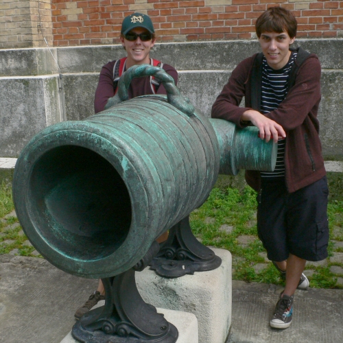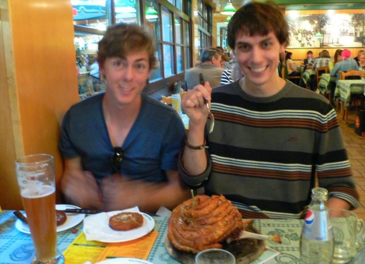On our last night together, we went back to the Danube Island area for yet another Austrian specialty dinner (we only had pizza or McDonalds-type meals one time all week!). Michael and Evan shared this large piece of a deep-fried pig's leg, and finished it to the bone.