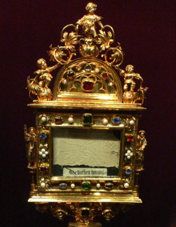 One of the most interesting museums was the Hofburg Treasury in Vienna. It contains a collection of many old relics, including teeth from John the Baptist and Saint Peter, fragments of the loincloth worn by Christ on the cross and from the Last Supper's tablecloth, the lance that pierced Christ's side, and, of course, a piece of the cross and one of the nails. Not pictured is a piece of the original manger from Bethlehem. I'm not sure how recently these items were still revered, but holy relics form an important part of medieval history.