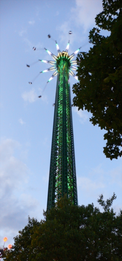After dinner, we toured the amusement area, where Evan was bold enough to go on this swinging tower. No one else was game! After a short game or two of air hockey between Carol and Michael, we said good-bye to the kids back at the hotel. They continued to Verbier in Switzerland for a few days of mountain biking before meeting their mom and girlfriend in Italy and traveled with them to Germany.